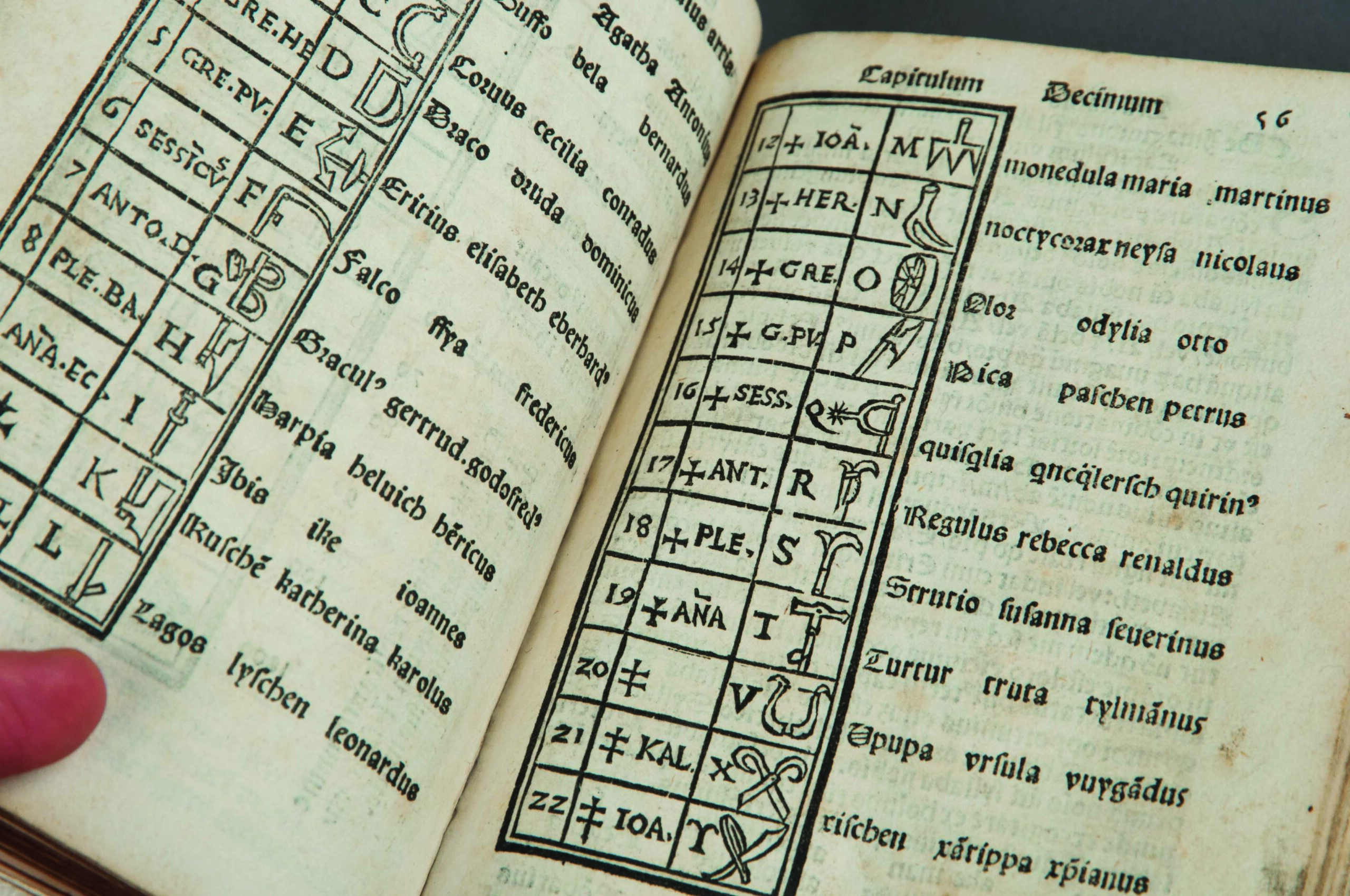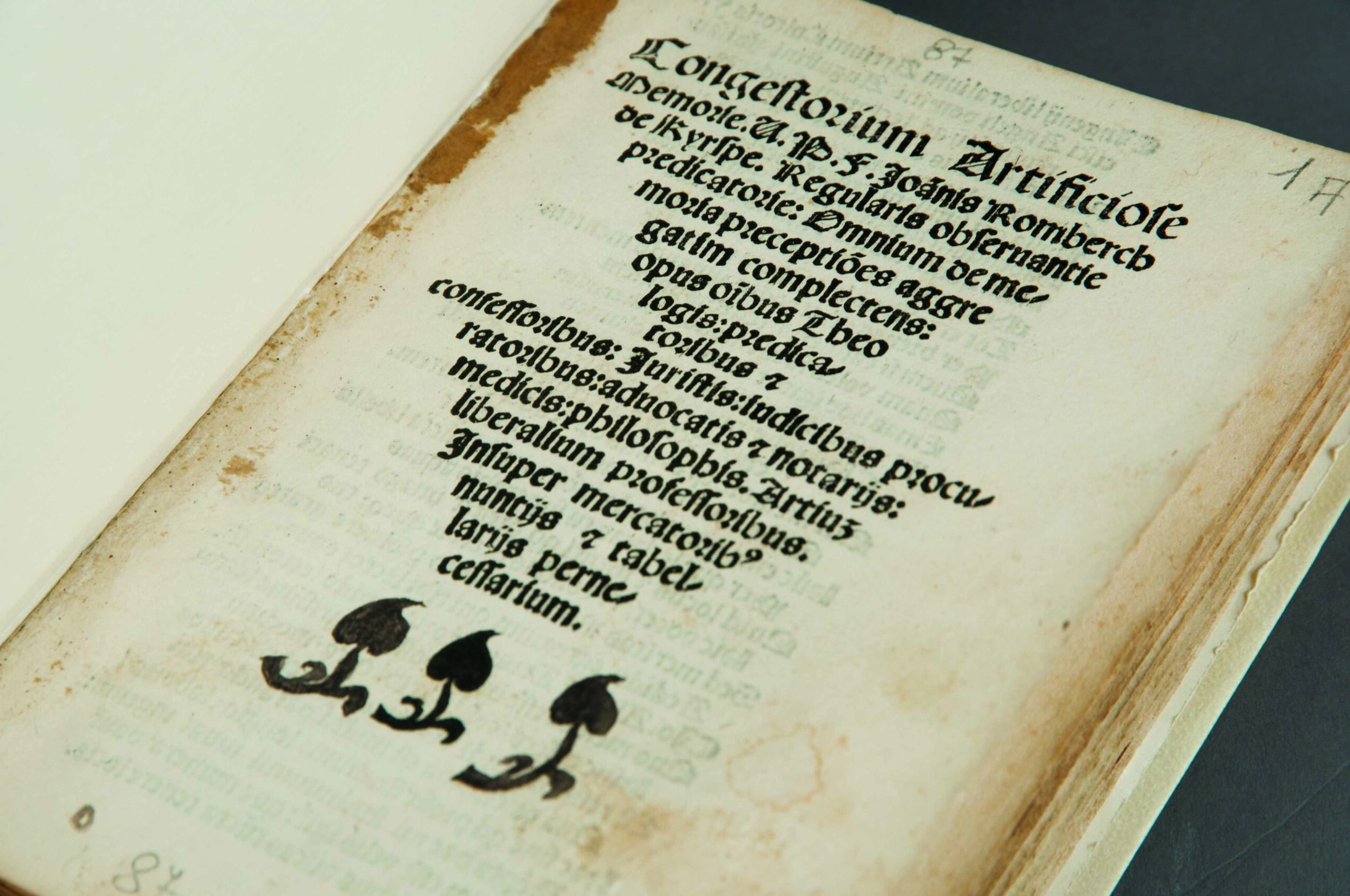 Per l’occasione furono esposti numerosi volumi della sezione antica del Fondo, che si compone di un manoscritto del secolo XV (Petrus de Rosenheim),197 libri pubblicati prima del 1800, tra cui dodici incunaboli.