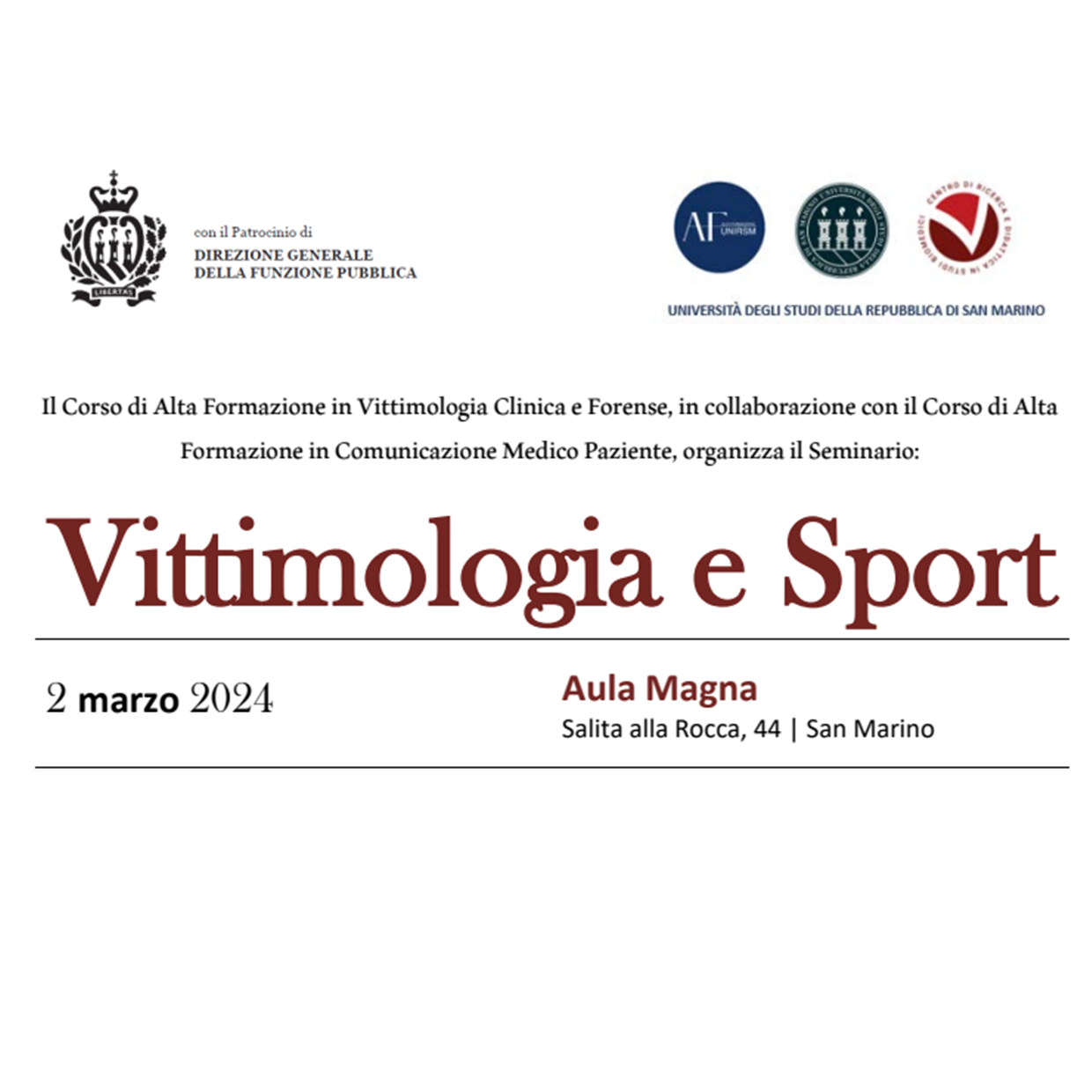 Per iscrizioni: altaformazione@unirsm.sm