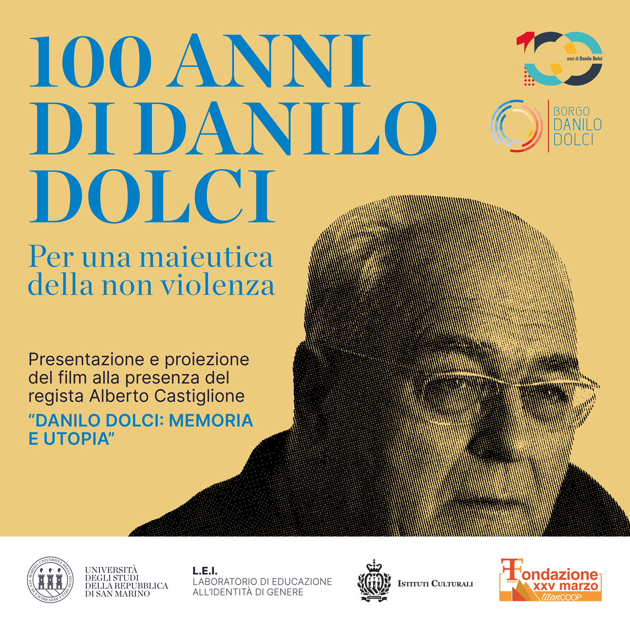 Il seminario a lui dedicato si divide in tre sezioni: la prima con uno sguardo più “storico”, per presentare, attraverso le parole delle figlie, delle amiche e degli amici, le opere teoriche e pratiche di questo maestro, la seconda con un affondo sull’attualizzazione del suo insegnamento nella pratica educativa quotidiana con particolare riferimento al suo intervento a San Marino, la terza su come raccontare Danilo Dolci e il suo pensiero con la proiezione del film “Danilo Dolci: Memoria e Utopia” alla presenza del regista Alberto Castiglione.