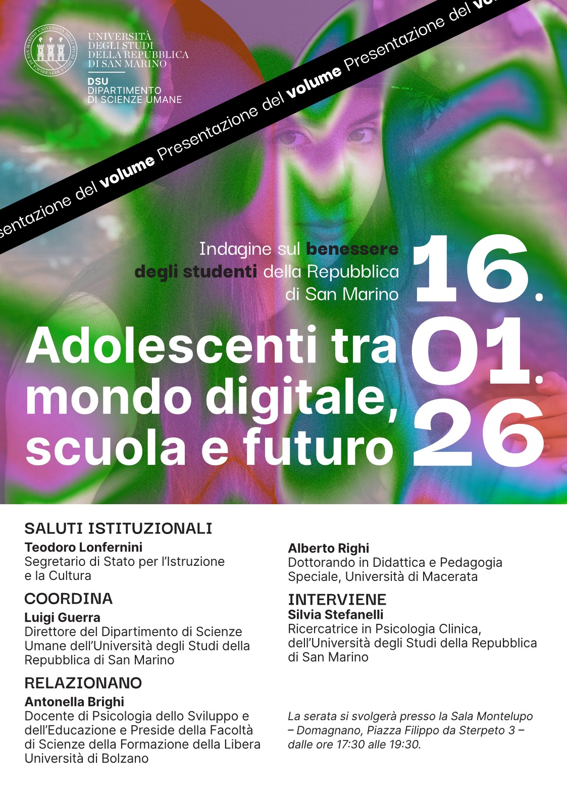Serata pubblica organizzata in collaborazione con il Dipartimento Istruzione. 16 gennaio 2026 ore 17.30 – Sala Montelupo, Domagnano |
