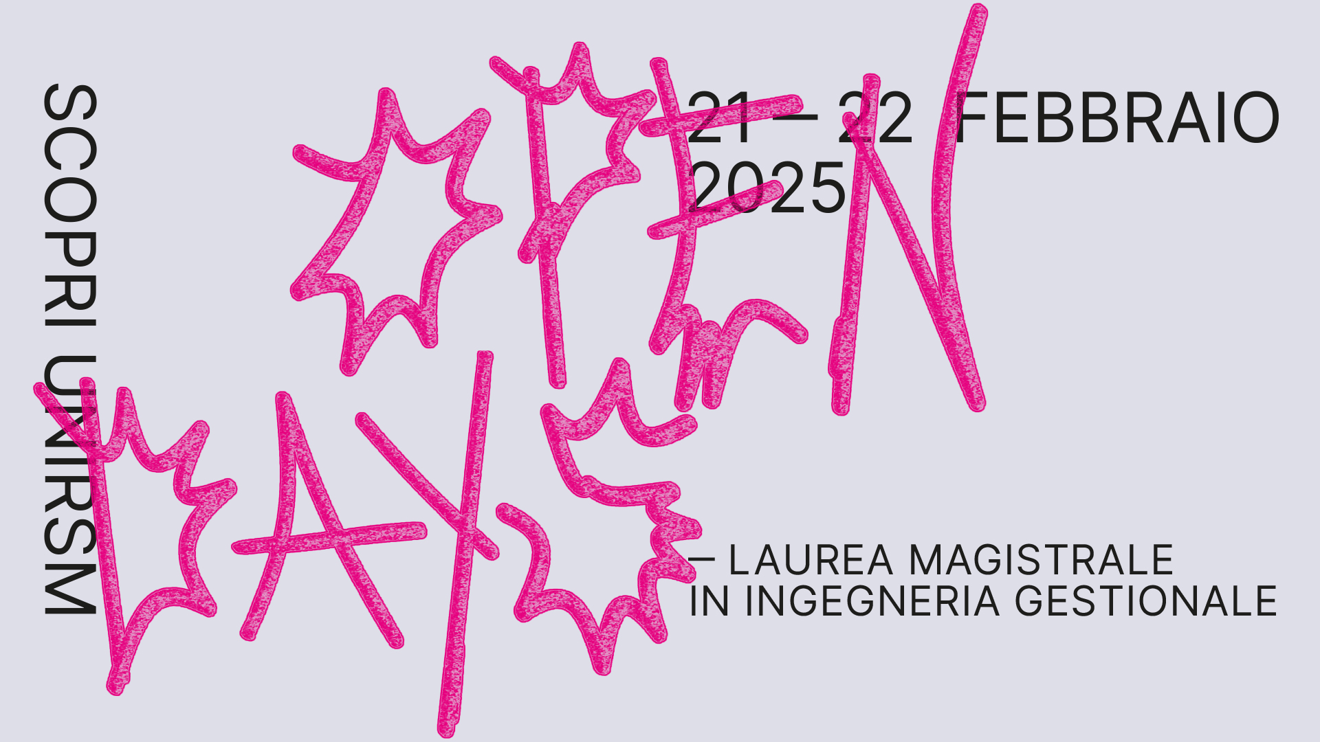 Se hai completato una triennale in ingegneria e stai cercando un percorso che arricchisca la tua formazione con competenze trasversali e altamente richieste dal mercato, gli Open Days del 21 e 22 febbraio 2025 sono l’occasione perfetta per te. La laurea magistrale in Ingegneria Gestionale ti offre l’opportunità di combinare le solide basi tecniche del tuo percorso con strumenti innovativi per la gestione aziendale, aprendoti a nuovi orizzonti professionali e ruoli strategici nelle organizzazioni moderne. Durante le giornate potrai visitare la nostra nuova e modernissima sede, parlare direttamente con docenti, studenti e tutor, e partecipare a laboratori interattivi che ti faranno vivere in prima persona la dinamicità del nostro percorso di studi.