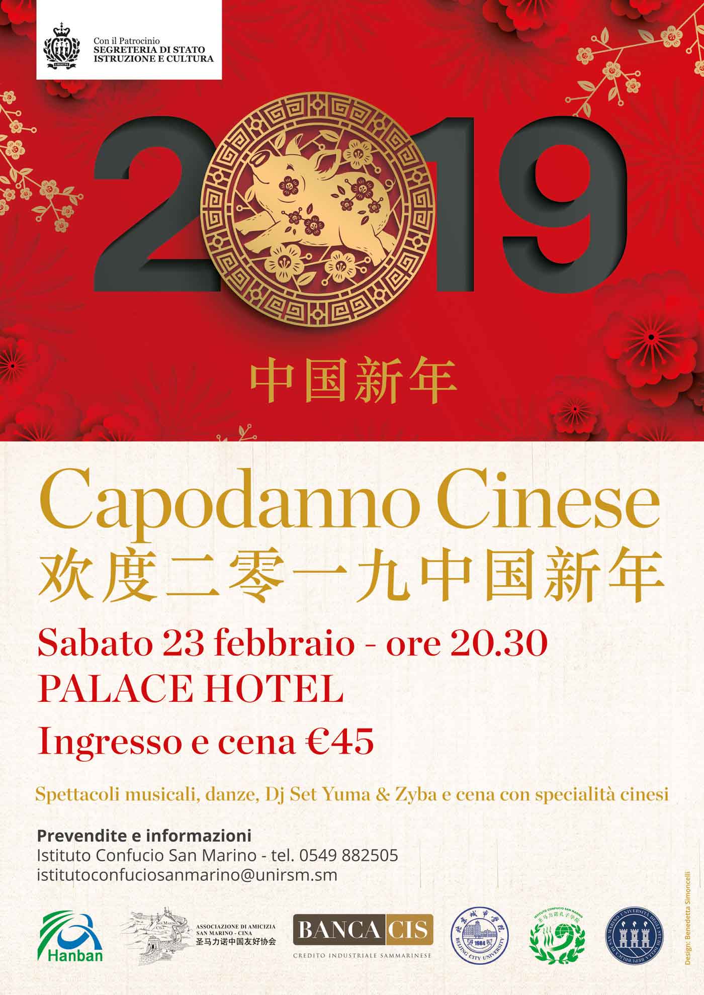Sabato 23 febbraio 2019, ore 20.30, presso il “PALACE HOTEL” di San Marino, festeggeremo tutti insieme il Capodanno Cinese.