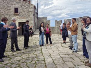 The event was attended by Dario Galassi, Ambassador of San Marino to China, Tomaso Rossini, Mayor of San Marino, and some officials of the Castle Committee. Tourists from all over the world showed great interest in calligraphy and came to try it. Write the words “China and San Marino are friendly” and use a writing brush and Chinese ink to draw the mountains and rivers of San Marino.