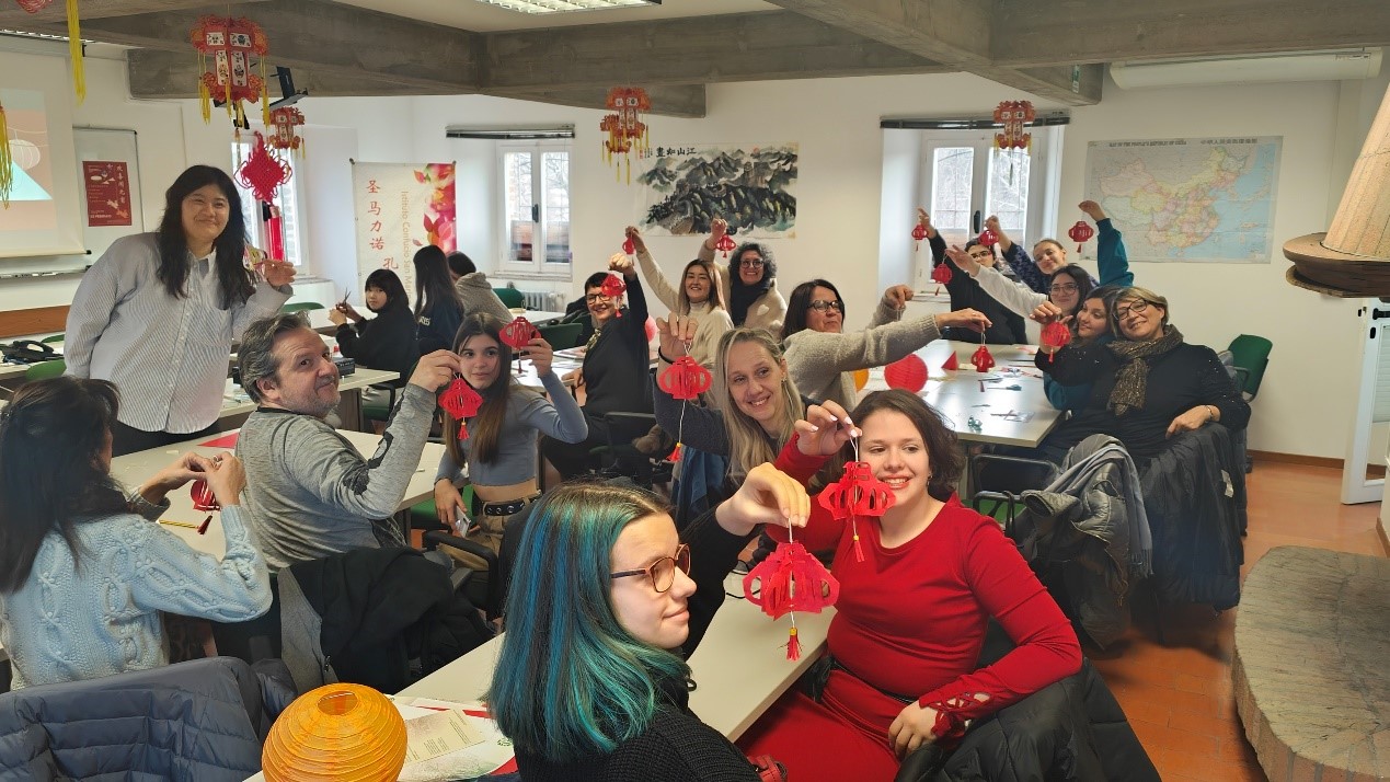 On this day, the Confucius Institute of San Marino celebrated the Chinese Lantern Festival with more than 20 people from the local community of San Marino with decorative lanterns. The guests visited the Confucius Institute’s Chinese Medicine Museum, the Chinese Culture Library, etc., listened with great interest to the cultural lectures and learned vividly the customs of lantern appreciating and the shaking of the sweet dumplings. The guests not only made paper lanterns themselves, but also shook the sweet dumplings with their own hands. Moreover, they expressed their wish to take home the cooked sweet dumplings together with the folklore knowledge of the Lantern Festival along with the understanding of the Chinese people’s desire for reunion and happiness.