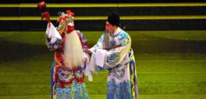 L’Opera di Pechino comprende recitazione, acrobazia, musica, canto, gong e tamburi, maschere, ecc. il che la rende una complessa arte generale del palcoscenico. L’Opera di Pechino ha una storia di oltre 200 anni, è una forma di opera nata nella capitale, l’imperatore Qianlong della dinastia Qing amava molto l’opera, si trasformò più influente opera della Cina, chiamata “tesoro nazionale”, l’Opera di Pechino comprende 4 ruoli: Sheng, Dan, Jing e Chou, lo Sheng è la figura maschile; il Dan quella femminile; il Jing è una figura maschile particolare per carattere, qualità morali o aspetto, il Chou è un pagliaccio con una mascherina bianca sul naso.