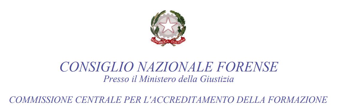 Ai sensi del Regolamento CNF n.6/2014, con riferimento all’attività formativa suindicata, la Commissione centrale per l’accreditamento della formazione, all’esito dell’esame compiuto, delibera di concedere l’accreditamento nella misura di: n. 18 crediti formativi