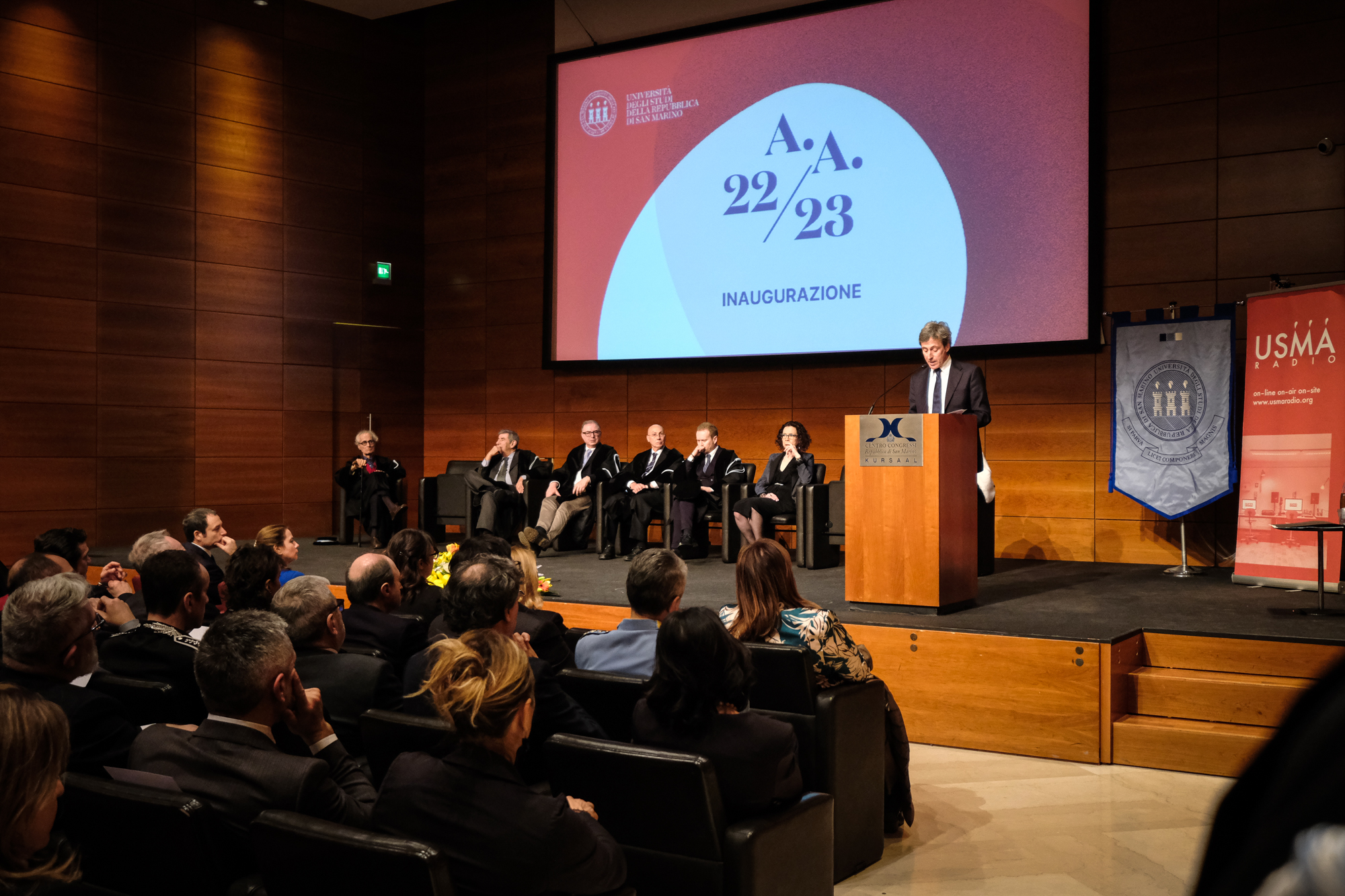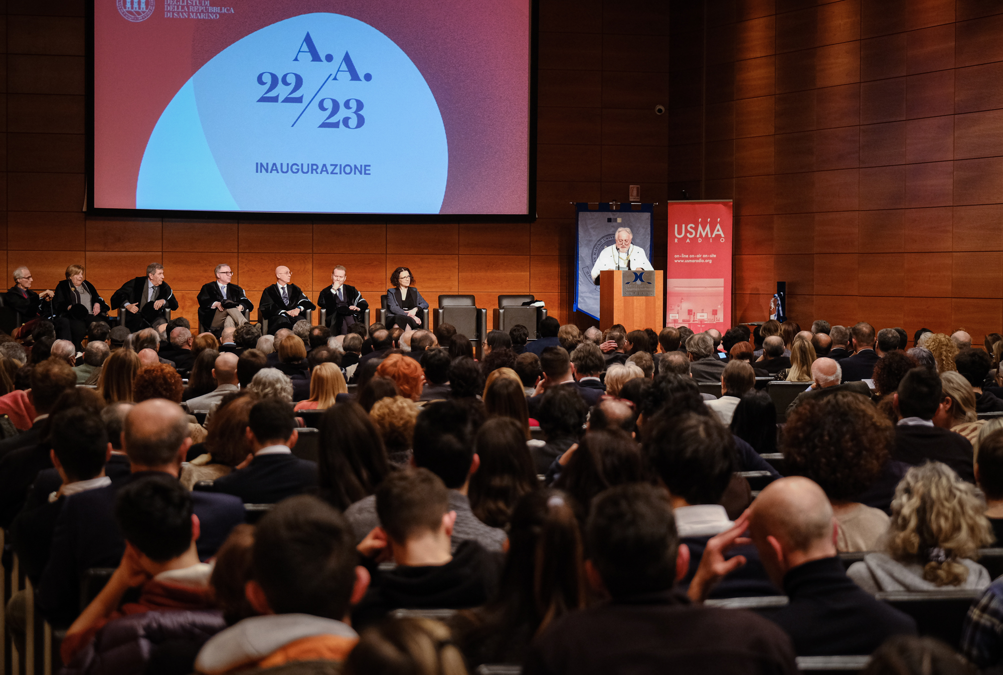 “Un luogo di confronto e dialogo liberi, per aiutare a cogliere le potenzialità e le inclinazioni, per l’accrescimento degli strumenti culturali e cognitivi necessari allo sviluppo e all’emancipazione della persona, in cui ci sia lo stimolo ad avere idee e poi esporle, magari modificarle, aprendosi al mondo per poterlo anche un po’ cambiare, dopo averne colto la complessità”. Questa la strada tracciata da Corrado Petrocelli, Rettore dell’Università degli Studi della Repubblica di San Marino, durante la cerimonia di inaugurazione dell’Anno Accademico 2022-23 che ieri, venerdì 3 marzo, ha registrato il tutto esaurito al Centro Congressi Kursaal a fronte degli oltre 500 posti disponibili. In platea i Capitani Reggenti, rappresentanti istituzionali e accademici, studenti e non solo.