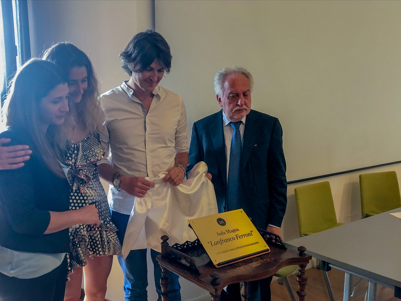 L’Aula Magna della sede del Dipartimento di Storia e dell’Istituto Giuridico dell’Università degli Studi della Repubblica di San Marino è stata intitolata a Lanfranco Ferroni durante una cerimonia che ieri, mercoledì 8 giugno, ha raccolto nel centro storico del Titano accademici, rappresentanti istituzionali, i familiari e non solo.