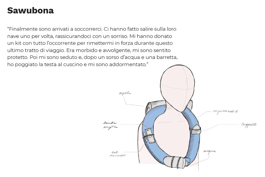 “La ricchezza e complessità dei contesti regionali africani o mediorientali e dell’attuale fenomeno migratorio verso l’Europa pongono interrogativi profondi sul nostro saper essere umani, prima che cittadini di luoghi o comunità stanziali ricche, forti e potenti”, spiega Varini dal corso di laurea in Design dell’Ateneo sammarinese. “Ciò – prosegue – esorta risposte personali e incisive sul nostro sapere e sul dover agire positivamente verso le fragilità di individui o comunità costretti al nomadismo economico, politico, sociale o ambientale. Ritengo formativo, per i nostri studenti e per una scuola che progetta visioni future come la nostra, il fatto di confrontarsi con i temi della vita reale delle persone quali soccorso, accoglienza, rifiuto e respingimento. Pensiamo che il mare debba rappresentare sempre un elemento di unione, scambio e condivisione equilibrata e reciproca. La maturazione della coscienza civica di un progettista passa attraverso la negazione delle visioni superficiali, facili e opportuniste, nonché per l’esaltazione del valore delle differenze. Deve indirizzare la ricerca di proposte meditate verso un’esistenza migliore per tutti”.