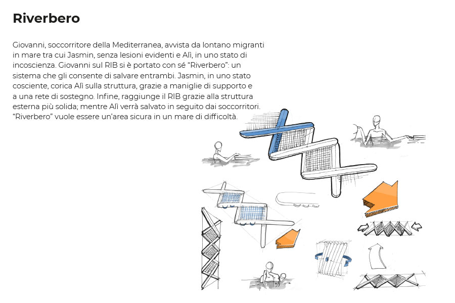 Un’appendice gonfiabile per rendere più stabile l’approccio dei mezzi di soccorso che entrano in contatto con i gommoni dei migranti agevolando allo stresso tempo il passaggio delle persone da un’imbarcazione all’altra, un nuovo e pratico strumento per recuperare i soggetti eventualmente caduti in mare, quattro kit per rispondere alle necessità più immediate in termini di accoglienza, alimentazione e riposo. Queste alcune delle soluzioni proposte dagli studenti protagonisti dei recenti workshop in Design dell’Università degli Studi della Repubblica di San Marino per la nave Mare Jonio di Mediterranea Saving Humans. I progetti, che coinvolgono sia le fasi di recupero dei migranti in mare che la loro permanenza sull’imbarcazione, includono inoltre due soluzioni per riallestire le aree in cui vengono accolti, curati e ospitati i soggetti una volta a bordo, in sostituzione degli attuali container.
