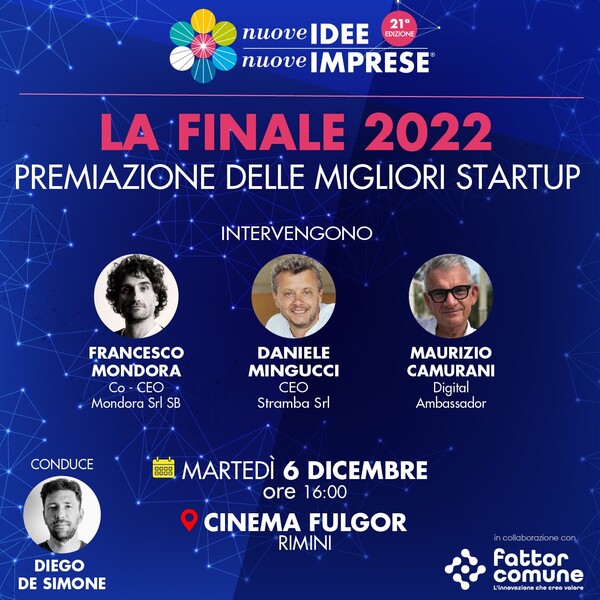 Martedì 6 dicembre si svolgerà l’evento di premiazione della XXI edizione di Nuove Idee Nuove Imprese. Appuntamento alle 16 al Cinema Fulgor di Rimini.