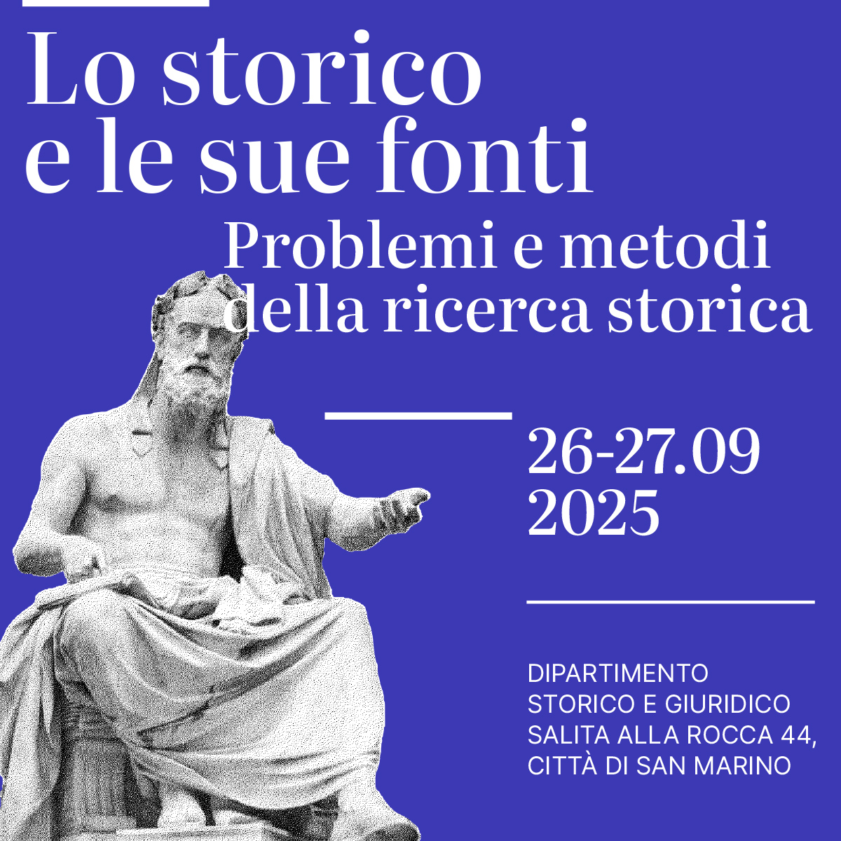 La Scuola Superiore di Studi Storici dell’Università degli Studi della Repubblica di San Marino organizza il convegno internazionale Lo storico e le sue fonti. Problemi e metodi della ricerca storica, che si terrà presso il Dipartimento Storico e Giuridico dell’Ateneo il 26 e il 27 settembre 2025.