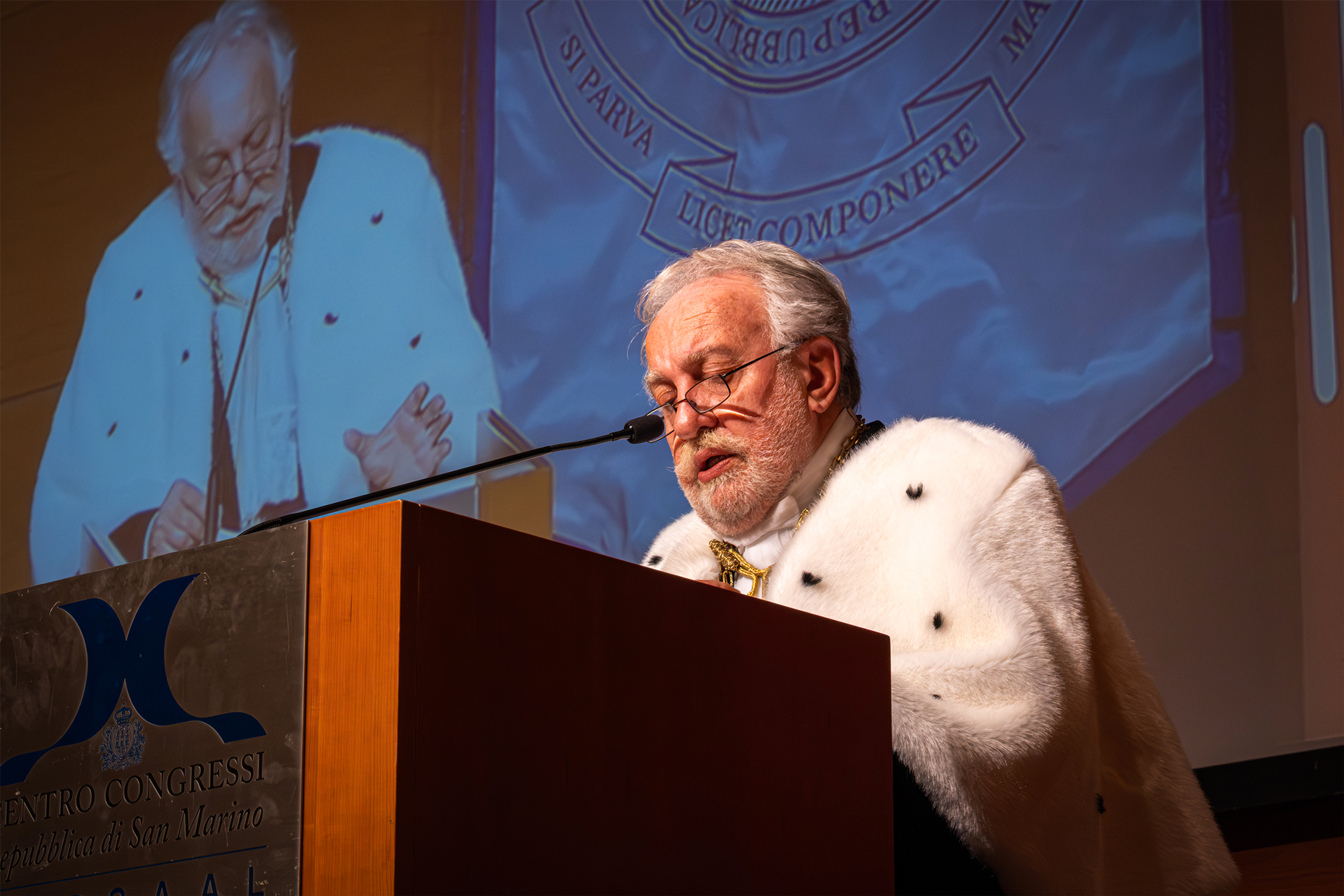 Sul palco, dopo la presentazione di un progetto del corso di laurea in Design, è salito quindi il principale ospite della cerimonia, Gustavo Zagrebelsky. Durante la lectio magistralis dal titolo “Elogio del piccolo”, offerta a una platea che ha coinvolto fra gli altri i Capitani Reggenti Francesca Civerchia e Dalibor Riccardi, il giurista ha analizzato la storia di San Marino definendo il Titano “un’entità che ha sempre difeso la libertà come identità propria, non beneficiaria passiva di equilibri, accordi e concessioni tra altre potenze. In breve, non la risultante di interessi altrui. Certo – ha detto – in questa terra si sono convogliati flussi finanziari rispetto ai quali nei tempi nostri si vuole vedere chiaro. E la rocca è meta di flussi turistici. Ma non potremmo ridurre a queste visioni meschine una realtà grande per significato e piccola per dimensione. Se consideriamo le linee di sviluppo della storia europea e mondiale, San Marino presenta qualcosa di miracoloso”.